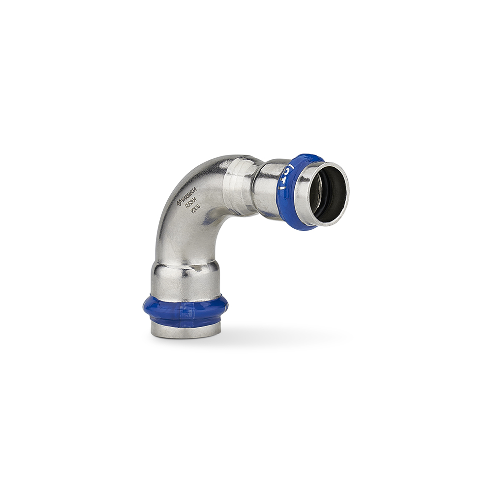 Угольник переходной 90° двухраструбный Varmega Inox Press используется для соединения труб разных диаметров под углом 90 градусов. Для получения надежного неразъемного соединения трубы и фитинга потребуется специальный пресс-инструмент с насадками типа профиль «V».
